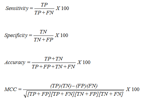 Classifier | Input feature | Threshold | Sensitivity | Specificity | Accuracy | MCC |