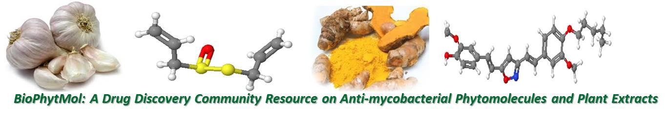 BioPhytMol is a manually curated drug discovery community resource on anti-mycobacterial phytomolecules and plant extracts. Currently, the resource holds a total of 2582 entries including 188 plant families (comprised of 692 genera and 808 species) and 633 active compounds and plant extracts identified against 25 target mycobacteria.